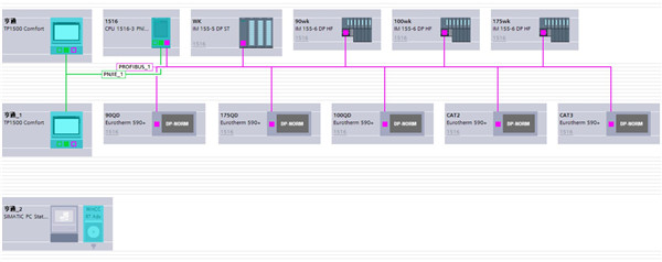 3、传动系统挤出机、牵引机采用PROFIBUS总线通讯,