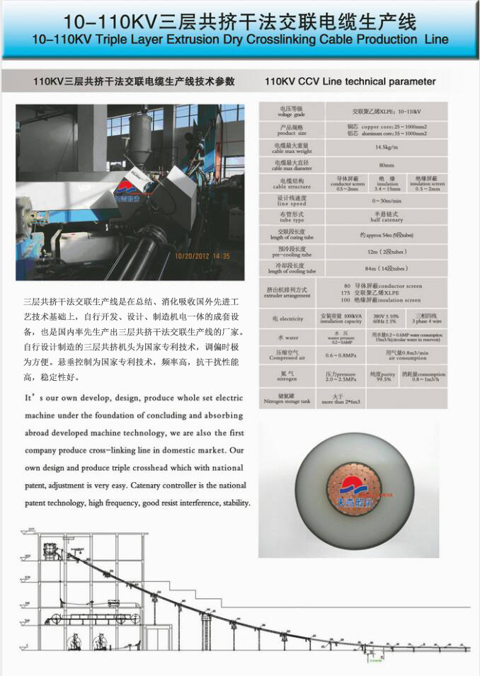 110KV三层共挤干法交联电缆生产线(首段固化)